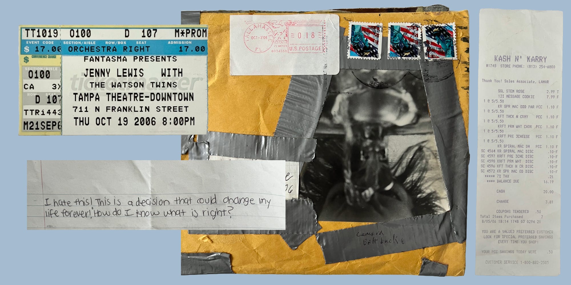 I’ve always been an archivist. I have saved every single letter my mom has written me; I still have handwritten hall passes, folded notes from high school friends, a small pile of concert and movie tickets. I’ve kept middle school journals that are excruciating to read, a folder of every MySpace photo I ever took. But I could not find a single piece of photographic or written evidence to indicate that I had ever spent time with him. I’ve never deleted a personal email—if we’d written to each other, it would still be lurking in my Gmail archive. This was pre-smartphone1, so there were no text messages to look back on, but I used both a film and a digital camera regularly back then.