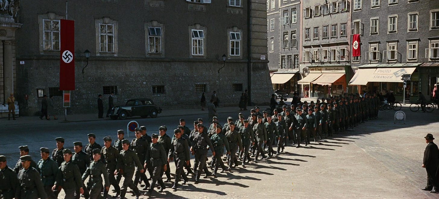Across school, work, and warfare, uniforms have historically served a common function: to let you act within a role (student, worker, soldier) rather than as an individual, to create distance from the self. Each time I watch my favorite movie (the anti-fascist classic The Sound of Music), I get chills at the sight of the Nazis marching in a diagonal line through Salzburg’s otherwise empty central square, uniforms neatly pressed, arms swinging in unison, indistinguishable from one another but unmistakable as a group. There was clarity in that sartorial demarcation of state-sanctioned evil; it’s the reason that just a single frame of film can evoke so much fear.