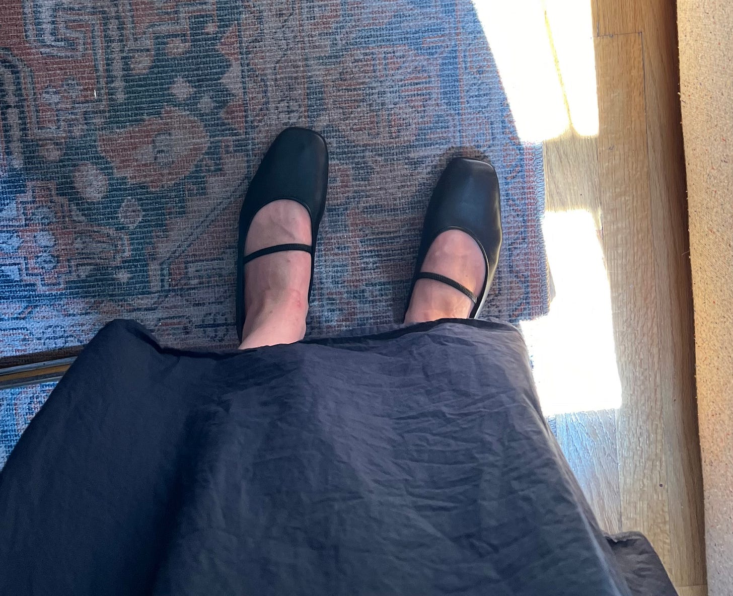 Everlane Day Mary Jane in black ($158, used a $200 gift card so I didn’t spend anything): I’ve had this gift card for a few months but wasn’t feeling drawn to anything new. I’ve had mixed experiences with (and heard mixed reviews about) Everlane shoes, but these had great reviews, and the leather seemed soft enough that they wouldn’t cause any bunion-related pain. I’ll wear them for real when the temperature drops again, but the report from walking around my apartment is two thumbs up! Also, now I can try to recreate the latest copy+paste look.
